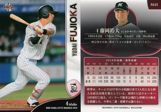 Japanese title: BBM/レギュラーカード/千葉ロッテマリーンズ/BBM2019 千葉ロッテマリーンズ M45 [レギュラーカード] : 藤岡裕大