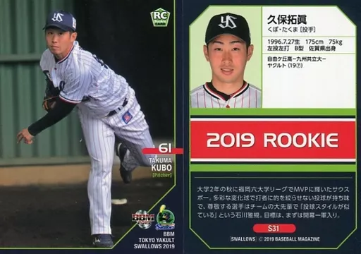 Japanese title: BBM/レギュラーカード/東京ヤクルトスワローズ/BBM2019 東京ヤクルトスワローズ S31 [レギュラーカード] : 久保拓眞