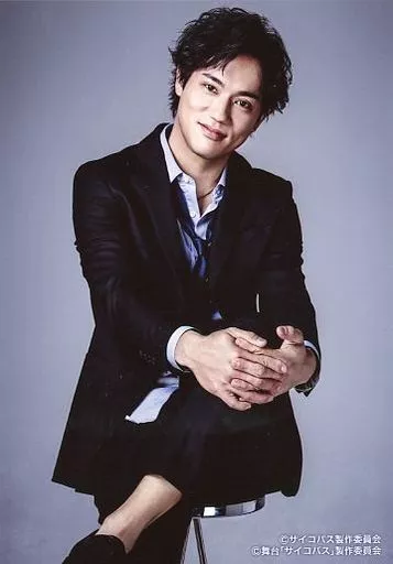 Japanese title: 生写真(男性)/俳優 小澤雄太(相田康生)/膝上・スーツ・椅子座り・背景グレー・キャラクターショット/舞台「PSYCHO-PASS サイコパス Virtue and Vice」個人ブロマイド