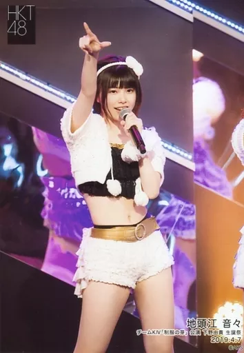 Japanese title: 生写真(AKB48・SKE48)/アイドル/HKT48 地頭江音々/ライブフォト・膝上・衣装白・黒・帽子・右手指差し/HKT48 チームKIV「制服の芽」公演 下野由貴 生誕祭 ランダム生写真 2019.4.7