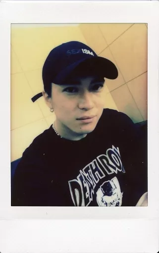 Japanese title: 生写真(男性)/歌手/X4 X4/YUYA(松下優也)/バストアップ・衣装黒・帽子・両手下げ・体右向き・口閉じ・背景黄/「X4 LIVE TOUR 2017 -Xross Mate-」物販ガチャ生チェキ