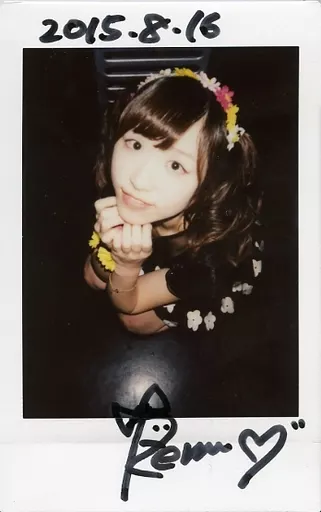 Japanese title: 生写真(女性)/アイドル ☆川北麗美/直筆サイン入り・全身・しゃがみ・衣装黒・白・両手顎・体左向き・背景黒/生チェキ