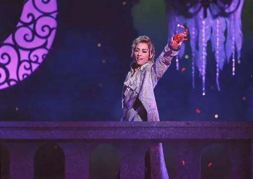 Japanese title: 生写真(女性)/宝塚歌劇団(花組)/女優 宝塚歌劇団(花組)/明日海りお/ライブフォト・横型・膝上・右手伸ばし・手前てすり・照明紫・2Lサイズ/花組東京公演『CASANOVA』舞台写真