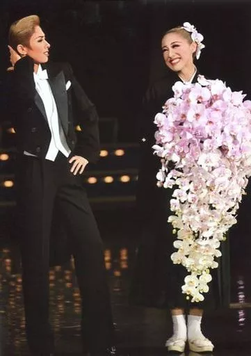 Japanese title: 生写真(女性)/宝塚歌劇団(花組)/女優 宝塚歌劇団(花組)/明日海りお・仙名彩世/ライブフォト・全身・衣装黒・仙名両手花・目線合わせ・2Lサイズ/「仙名彩世サヨナラショー」 舞台写真