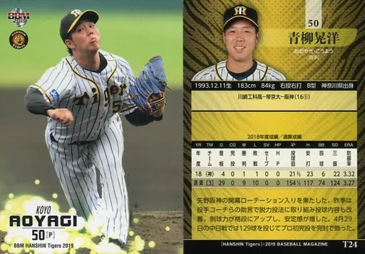 Japanese title: BBM/レギュラーカード/BBM2019 阪神タイガース T24 [レギュラーカード] : 青柳晃洋