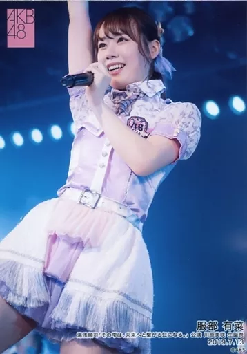 Japanese title: 生写真(AKB48・SKE48)/アイドル/AKB48 服部有菜/ライブフォト・膝上・衣装紫・白・右手上げ/湯浅順司「その雫は、未来へと繋がる虹になる。」公演 川原美咲 生誕祭 2019.7.13