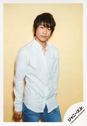Japanese title: 生写真(ジャニーズ)/アイドル/ジャニーズJr. ジャニーズJr./福島海斗/膝上・衣装白・体右向き・背景黄色/JOHNNYS’ ISLAND STORE オフショット/公式生写真