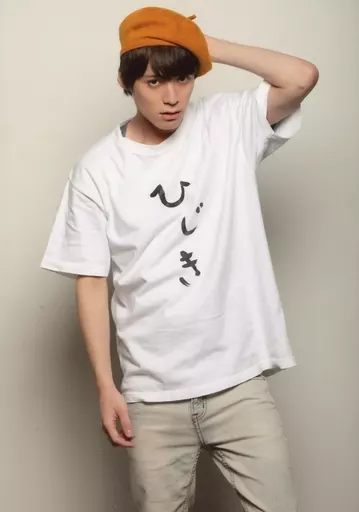 Japanese title: 生写真(男性)/俳優 横田龍儀/膝上・衣装白・Tシャツ・頭に小道具・左手頭触り・背景白/舞台「MONSTER LIVE!」キャストブロマイドC