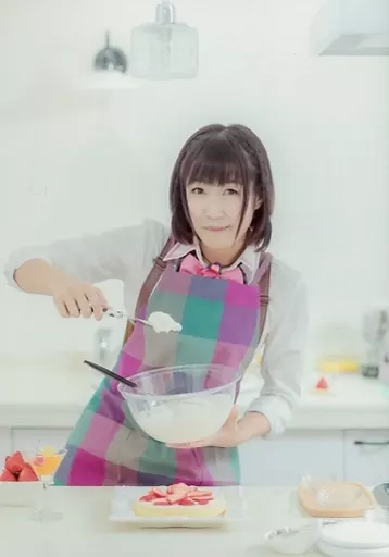 Japanese title: 生写真(女性)/女優 私立ルドビコ女学院/長橋有沙(長谷川・ガブリエラ・つぐみ)/膝上・衣装白・緑・ピンク・エプロン・右手パレットナイフ・左手ボウル/舞台「アサルトリリィ×私立ルドビコ女学院×人狼TLPT『未来への十字架』」写真くじ