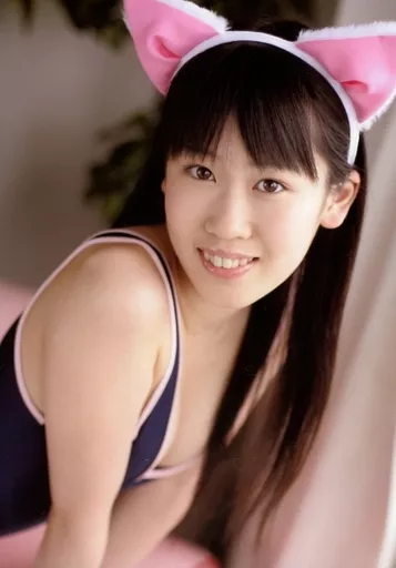 Official photo (female) / Gravure idol Tomomi Asaki / Bust up / Swimsuit black / Cat ears / Both hands down / Body facing right / DVD 「 debut Tomomi Asaki 15 years old 」 special Official photo