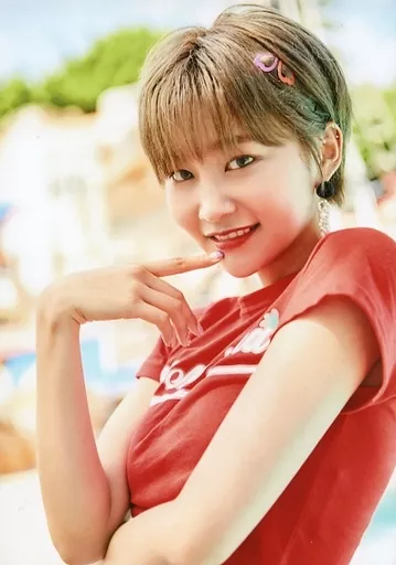 Japanese title: 生写真(女性) MOMOLAND/ヘビン(Hyebin)/上半身・衣装赤・右手人差し指顎/MOMOLAND JAPAN 1st Fanmeeting 2018「MERRY LAND SEASON 1」フォトコレクション