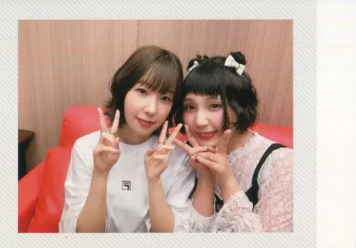 Japanese title: コレクションカード(女性)/CD「Don’t think,スマイル!!」きゃにめ特典チェキ風カード KiRaRe/田澤茉純・空見ゆき/横型・バストアップ・両手ピース/CD「Don’t think,スマイル!!」きゃにめ特典チェキ風カード