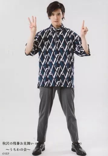 Official photo (male) / actor Kentaro Akisawa / Whole Body, Costume Black, Blue, White, Both Hands "31" / Event "Akisawa's Late-Summer Greeting - Uchiwa no Kai (Akisawa will make Uchiwa!)" random bromide