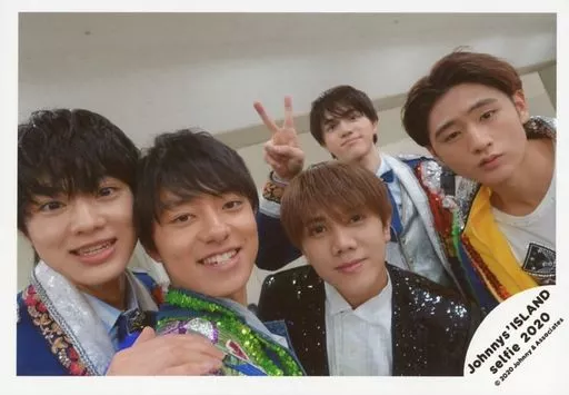 Japanese title: 生写真(ジャニーズ)/アイドル/ジャニーズJr. ジャニーズJr./集合(5人)/横型・バストアップ・衣装白・青・黒・岩崎右手ピース・佐藤右手肩/Johnnys’ ISLAND セルフィー 2020/公式生写真