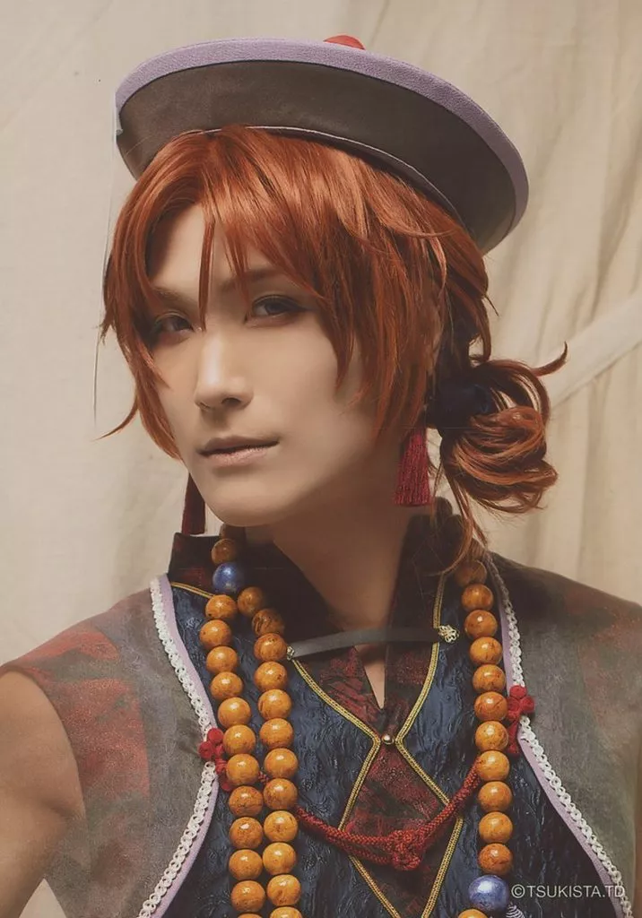 Japanese title: 生写真(男性)/俳優 栗田学武(葉月陽)/バストアップ・太極伝奇衣装・背景布ベージュ・キャラクターショット/2.5次元ダンスライブ「ツキウタ。」ステージ第10幕『月歌奇譚 太極伝奇』ブロマイド