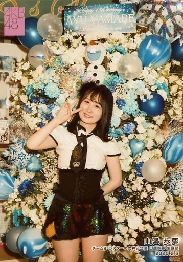 Japanese title: 生写真(AKB48・SKE48)/アイドル/AKB48 山邊歩夢/膝上・衣装黒・白・右手ピース・花/AKB48 チームB「シアターの女神」公演 山邊歩夢 生誕祭 ランダム生写真 2020.2.3