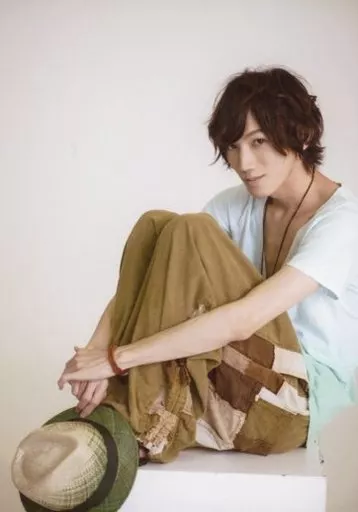 Japanese title: 生写真(男性)/俳優 廣瀬大介/全身・衣装水色・座り・左向き・右手帽子・両手重ね・口閉じ/舞台「abc★赤坂ボーイズキャバレー 表 FINAL!」会場限定物販ブロマイド