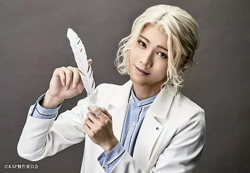 Japanese title: 生写真(男性)/俳優 國島直希(慈悲(ラファエル))/横型・バストアップ・衣装白・両手羽・背景グレー・キャラクターショット/音楽劇「黒と白 -purgatorium-」トレーディングブロマイド