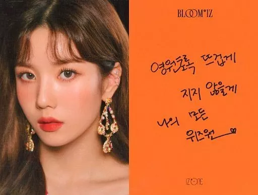 Japanese title: コレクションカード(女性)/ IZ*ONE/クォン・ウンビ/裏面オレンジ・印刷メッセージ入り/CD「BLOOM*IZ」(I*WILL Ver.)初回限定封入特典ミニカード