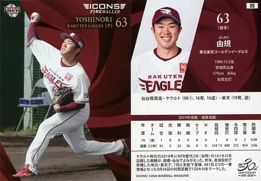 Japanese title: BBM/レギュラーカード/東北楽天ゴールデンイーグルス/BBM2020 ICONS -FIREBALLER- 09 [レギュラーカード] : 由規