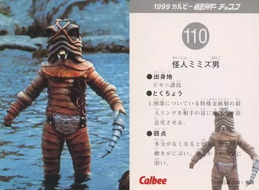 Japanese title: アニメ系トレカ/1999 カルビー 仮面ライダー チップス 第2弾 110:怪人ミミズ男