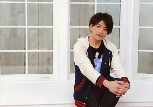 Official photo (male) / Voice actor Hikaru Midorikawa / Horizontal, Above the Knees, Costume White, Black, Red, Sitting, Both Hands / Voice Actor Event "King's Jungle 80 th Round" Bromide