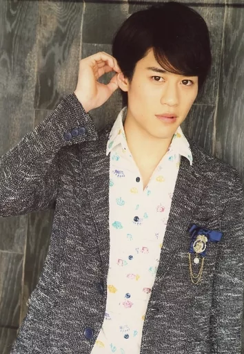 Japanese title: 生写真(男性)/俳優 石田隼/上半身・衣装グレー・白・青・右手上げ・顔右向き・背景グレー/「Reading Cinema×2017 Spring Special <LOVE×LETTERS>」ブロマイド