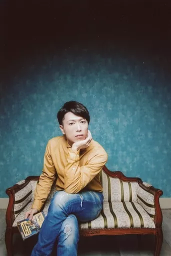 Japanese title: 生写真(男性)/俳優 横尾瑠尉/膝上・座り・衣装黄・右手本・左手頬・足組み・背景青/「横尾瑠尉生誕祭2019 るいいべvol.3」ブロマイド