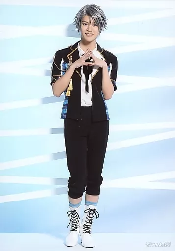 Japanese title: 生写真(男性)/俳優 植田慎一郎(宗像廉)/全身・ステージ衣装・背景水色・キャラクターショット/「2.5次元ダンスライブ『ALIVESTAGE』 Episode 3 SCHOOL REVOLUTION Hello 神さま 僕はここにいる!」ブロマイド