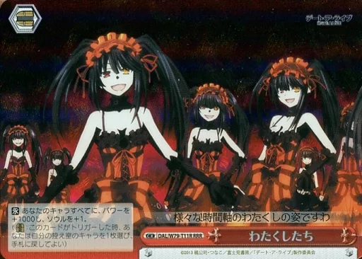 Japanese title: ヴァイスシュヴァルツ/RRR/クライマックス/トライアルデッキ+ デート・ア・ライブ DAL/W79-T11R[RRR]:(ホロ)わたくしたち