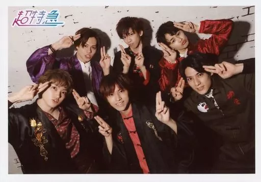 Japanese title: 生写真(男性)/アイドル/超特急 超特急/集合(6人)/横型・上半身・衣装紫.赤.黒・両手ピース・背景白/「BULLET TRAIN SPRING/SUMMER TOUR 2019『EUPHORIA ~Breakthrough. The Six Brave Stars~』」北海道6/15.16公演限定生写真