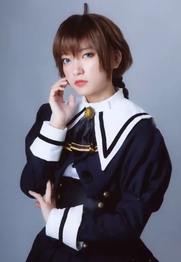 Japanese title: 生写真(女性)/声優 西本りみ(二川二水)/上半身・衣装青・黒・白・制服・左向き・右手頬・背景グレー・キャラクターショット/ブシロードpresents 舞台「アサルトリリィ League of Gardens」くじ写真A