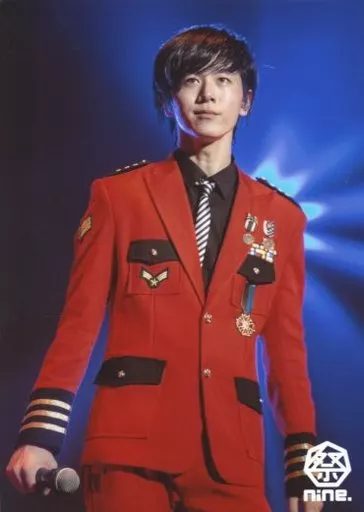 Japanese title: 生写真(男性)/アイドル/祭nine. 祭nine./横山統威/ライブフォト・上半身・衣装赤黒・右手マイク下・目線左・背景青・2Lサイズ/日本武道館ライブフォトセット