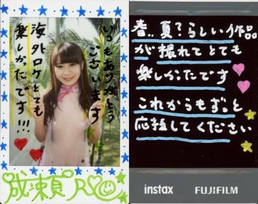 ☆ Rio Naruse / with handwritten signature / back side with handwritten message / upper body / costume white / both hands / outdoor / DVD 「 Wake-up! 」 special live cheki