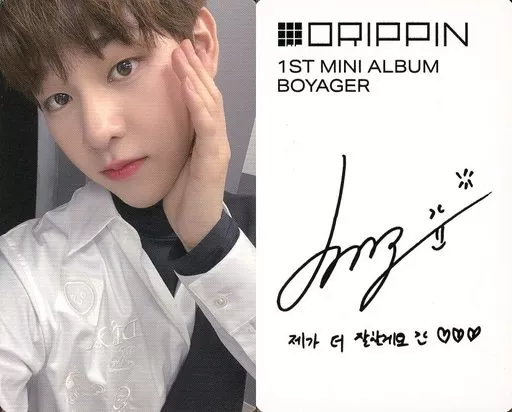 Japanese title: コレクションカード(男性)/CD「1st Mini Album Boyager」封入特典フォトカード DRIPPIN/ドンユン(DONG YUN)/衣装白・黒・左手頬・裏面印刷サイン入り/CD「1st Mini Album Boyager」封入特典フォトカード
