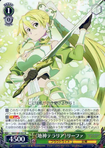 Japanese title: ヴァイスシュヴァルツ/R/キャラ/ブースターパック ソードアート・オンライン アリシゼーション Vol.2 SAO/S80-037[R]:<<地神テラリア>>リーファ