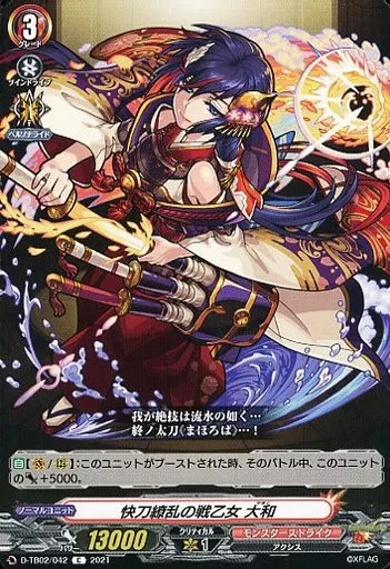 Japanese title: ヴァンガード/C/モンスターストライク/overDress タイトルブースター第2弾 「モンスターストライク」 D-TB02/042[C]:快刀繚乱の戦乙女 大和