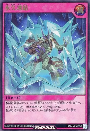 Japanese title: 遊戯王ラッシュデュエル/UR/罠/デッキ改造パック 激闘のサンダーストーム!! RD/KP06-JP064[UR]:永久凍結
