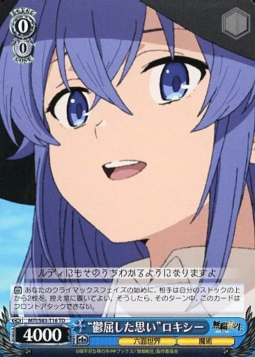 Japanese title: ヴァイスシュヴァルツ/TD/キャラ/トライアルデッキ+ 無職転生 ~異世界行ったら本気だす~ MTI/S83-T16[TD]:“鬱屈した思い”ロキシー