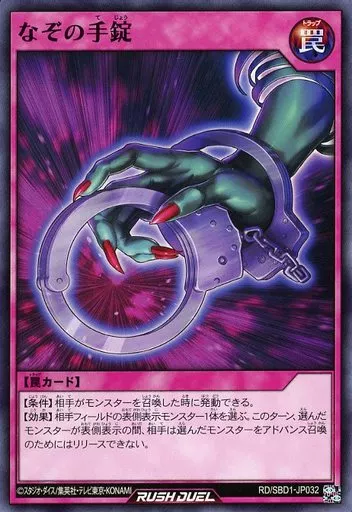 Japanese title: 遊戯王ラッシュデュエル/N/罠/最強バトルデッキ 遊我 -ハイパーマシンロード- RD/SBD1-JP032[N]:なぞの手錠