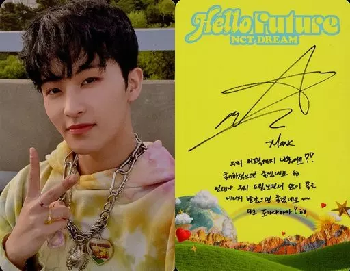 Collection Card (Male) / Special Photo Card with CD "Hello Future (Photo Book Ver.)" (HELLO Ver.) NCT DREAM / MARK / Back Yellow / With Print Signature and Message / CDs "Hello Future (Photo Book Ver.)" (HELLO Ver.) enclosed special photo card