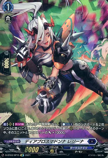 Japanese title: ヴァンガード/SP/ダークステイツ/overDress ブースターパック第3弾 「共進する双星」 D-BT03/SP15[SP]:ディアブロスマドンナ レジーナ