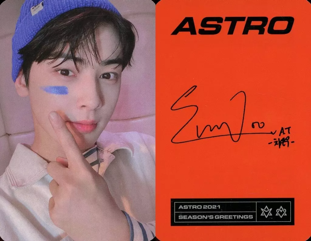 ASTRO / Cha Eunwoo / Reverse side printed with signature / "ASTRO 2021 SEASON'S GREETINGS (READY VER.)" enclosed photo card