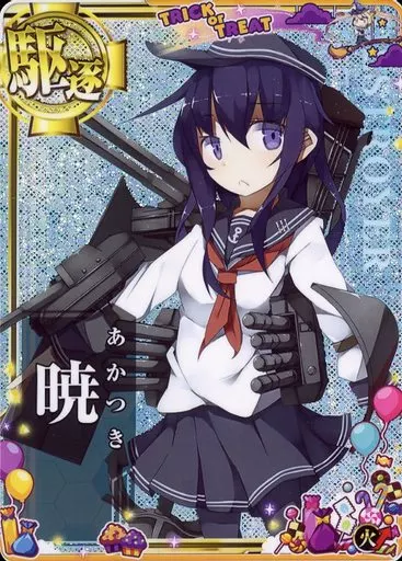 Japanese title: 艦これアーケード/駆逐艦/期間限定ハロウィン仕様オリジナルフレーム 2020年版 暁(ホロ)(火力↑)【ハロウィンフレーム2020】