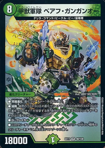 Japanese title: デュエルマスターズ/VR/自然/[DMEX-17]20周年超感謝メモリアルパック 究極の章 デュエキングMAX 40/138[VR]:甲獣軍隊 ベアフ・ガンガンオー