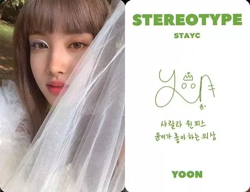 Japanese title: コレクションカード(女性)/CD「STEREOTYPE」(TYPE B Ver.)封入特典フォトカード STAYC/ユン(YOON)/裏面白・印刷サイン入り/CD「STEREOTYPE」(TYPE B Ver.)封入特典フォトカード
