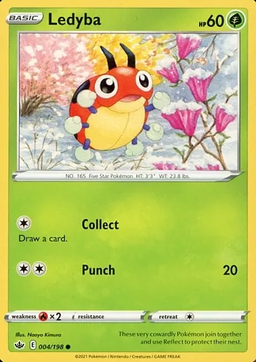 Japanese title: ポケモンカードゲーム/●(C)/草/英語版/Sword & Shield-Chilling Reign 004/198[●(C)]:Ledyba/レディバ