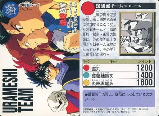 Rareness : Normal YU YU HAKUSHO Carddas 2nd bullet