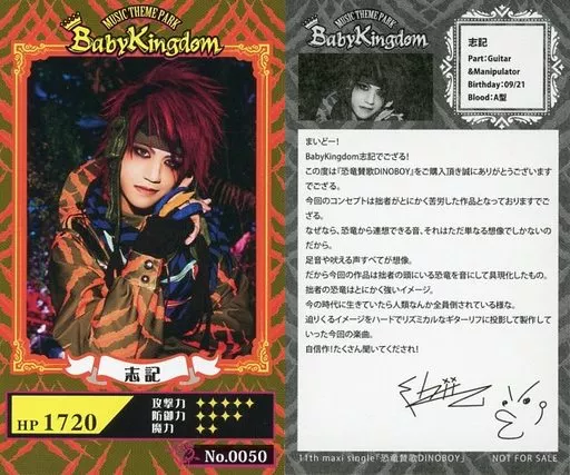 Japanese title: コレクションカード(男性)/CD「恐竜賛歌DINOBOY」全タイプ共通封入特典トレカ No.0050:BabyKingdom/志記/CD「恐竜賛歌DINOBOY」全タイプ共通封入特典トレカ