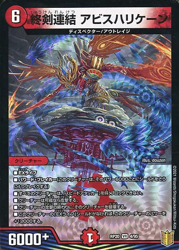 Japanese title: デュエルマスターズVR/火/[DMRP-20]王来篇 拡張パック第4弾 終末王龍大戦 4/95[VR]:終剣連結 アビスハリケーン